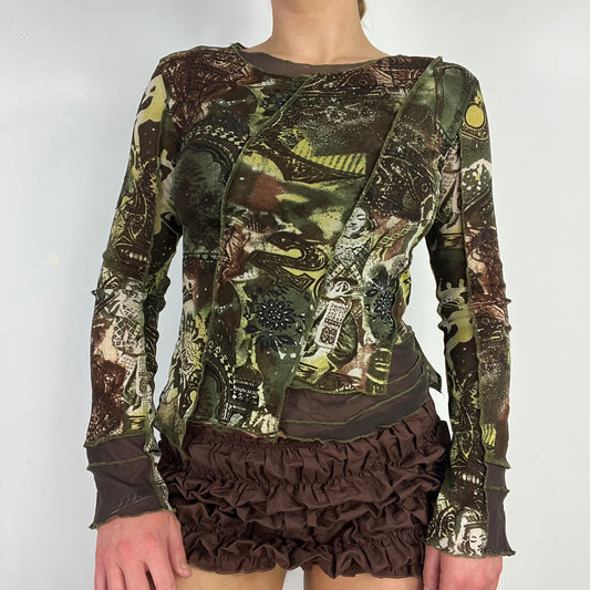 00s vintage mesh boho wrap long sleeve flare - Size M