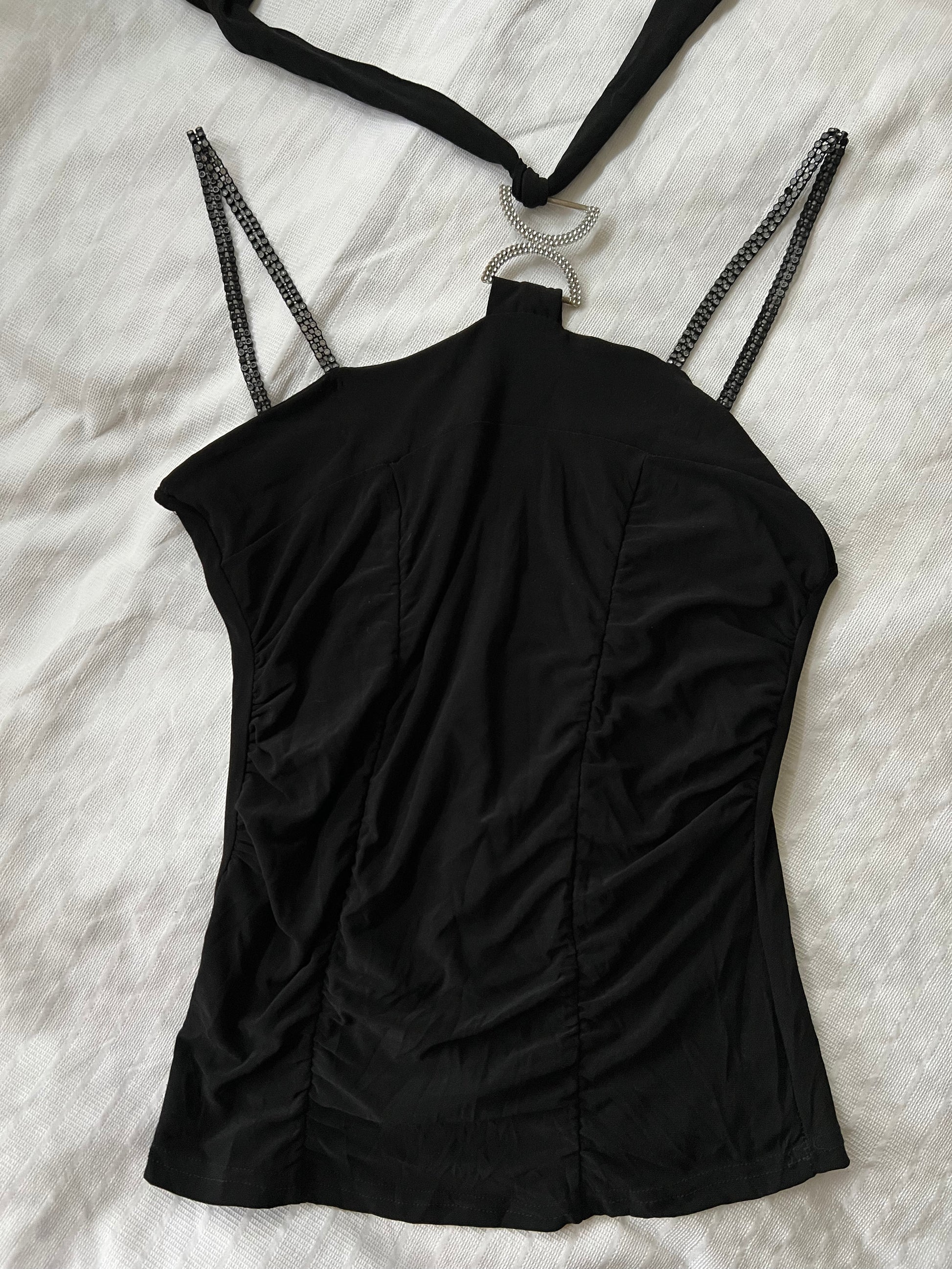 00s black cami vest halter top diamonte - Size S