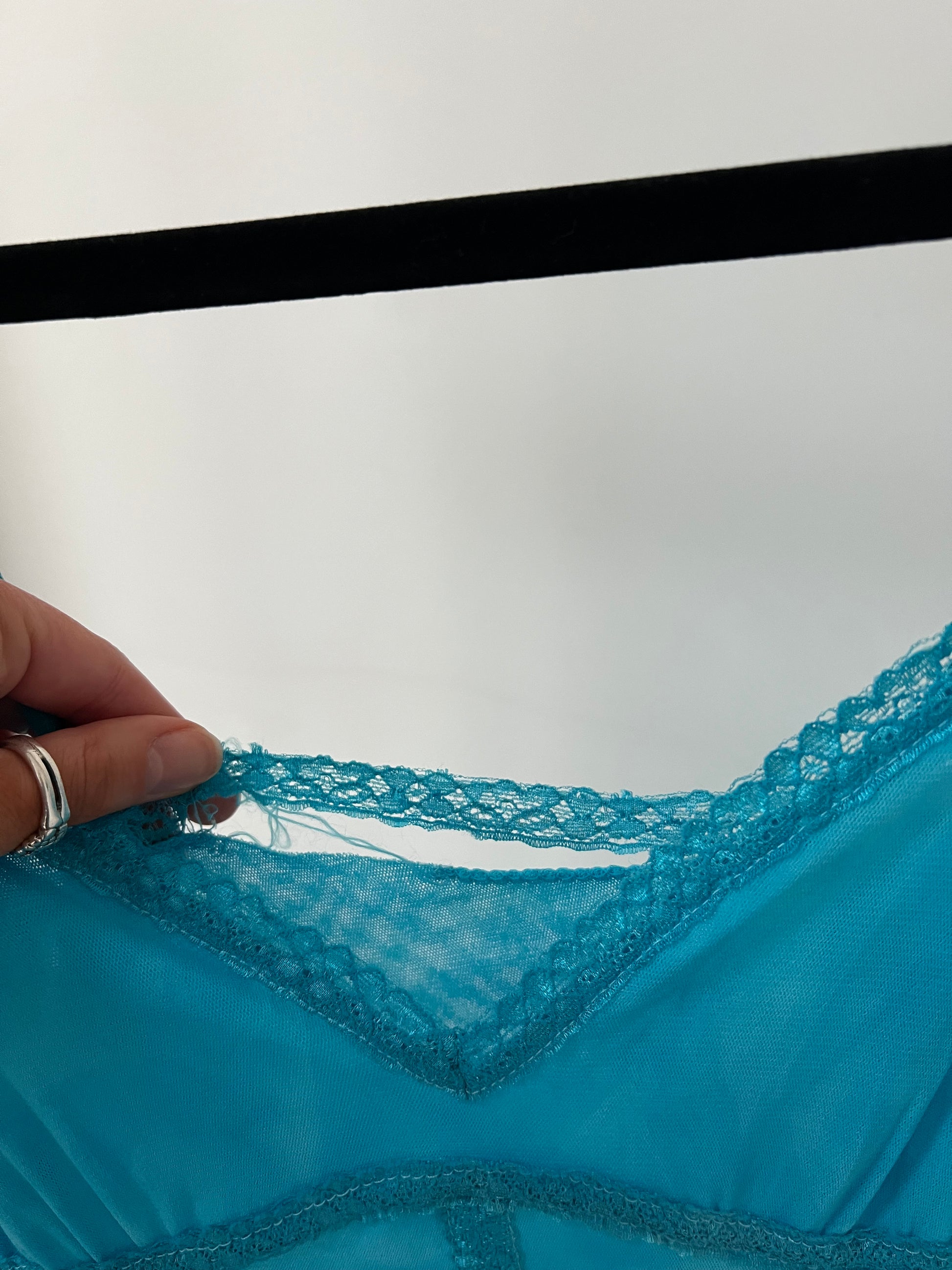 good vintage condition apart from a rip in the back seam shown in photos. Easily fixed with a hand stitch