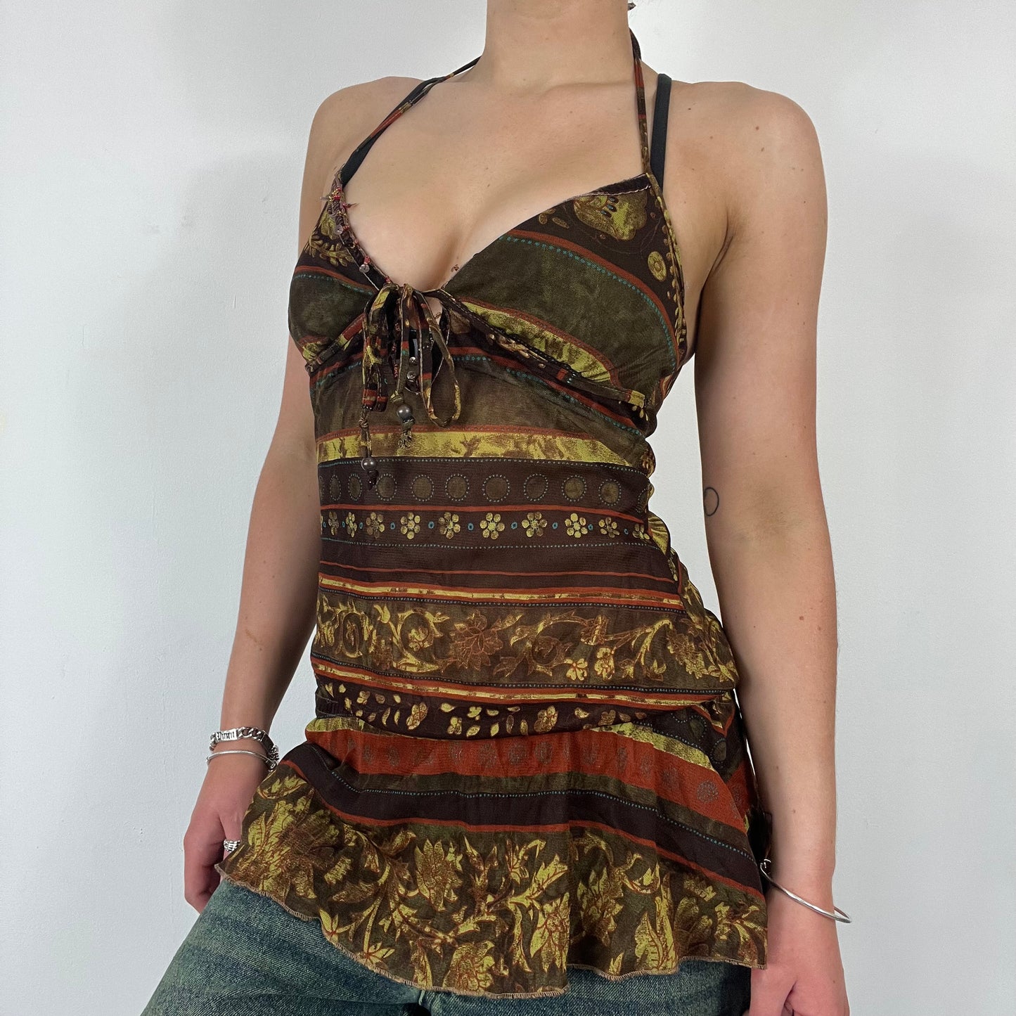 90s paisley sequin beaded halter neck dress top - Size S