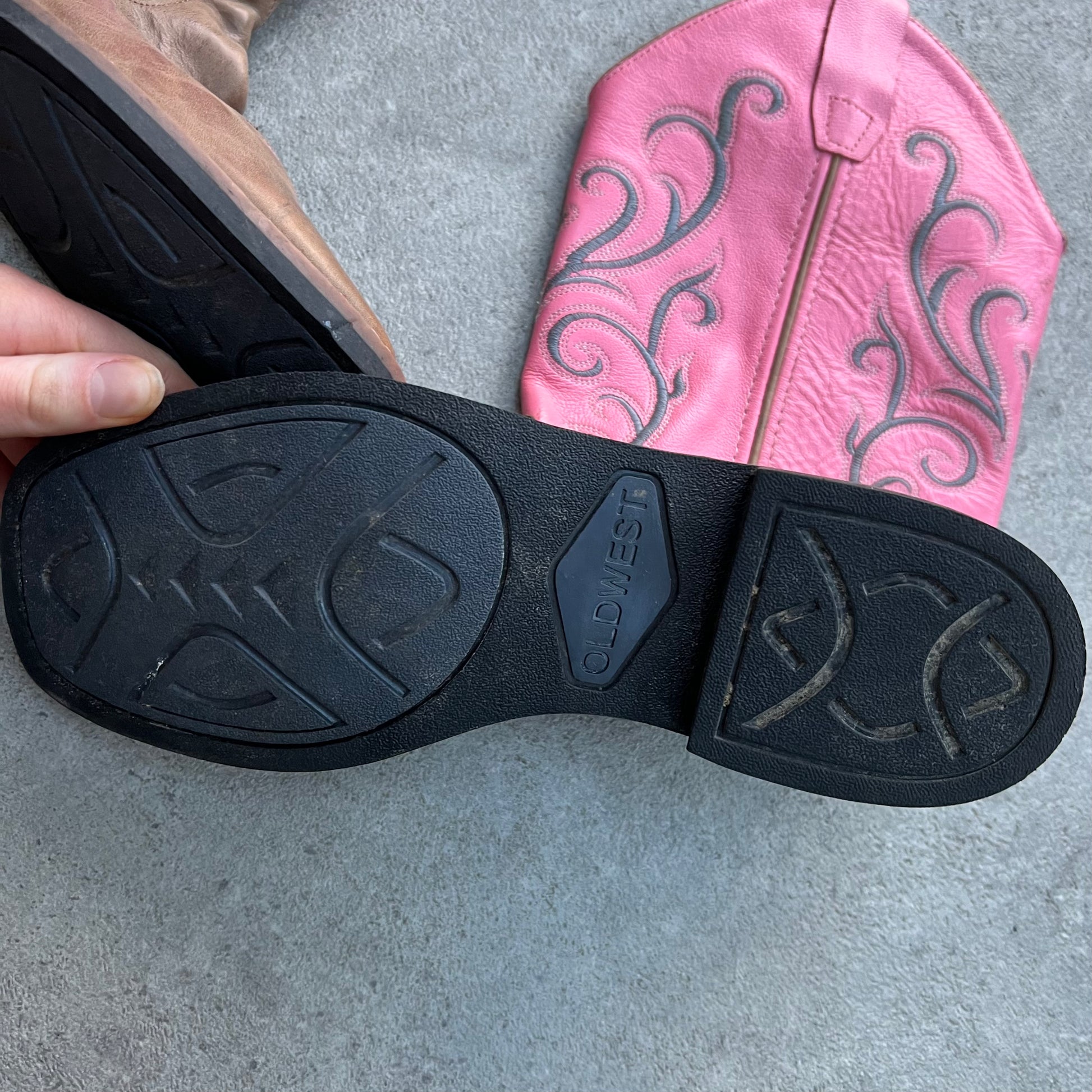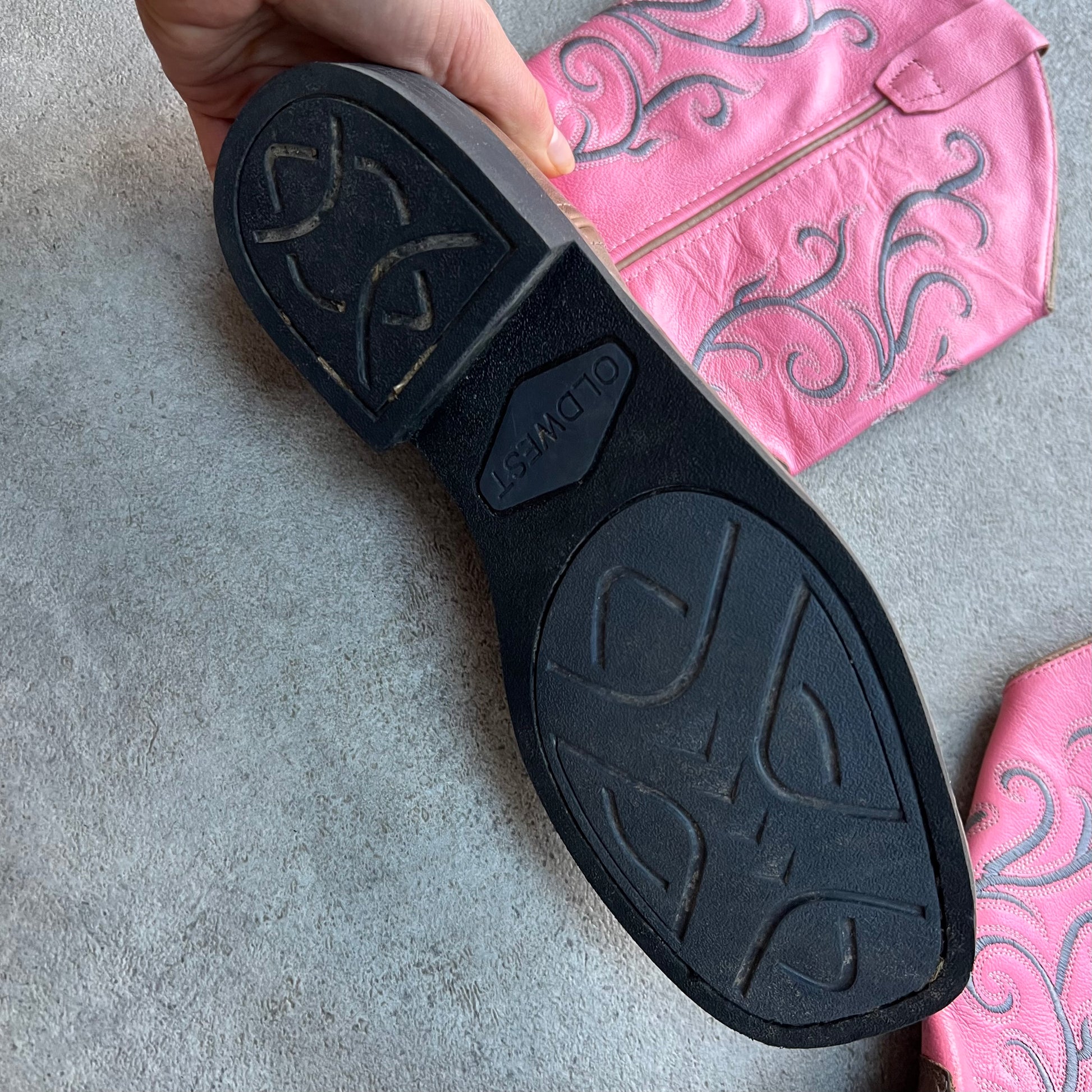 Real leather Old West Cowboy Boots Pink & Brown - UK 5