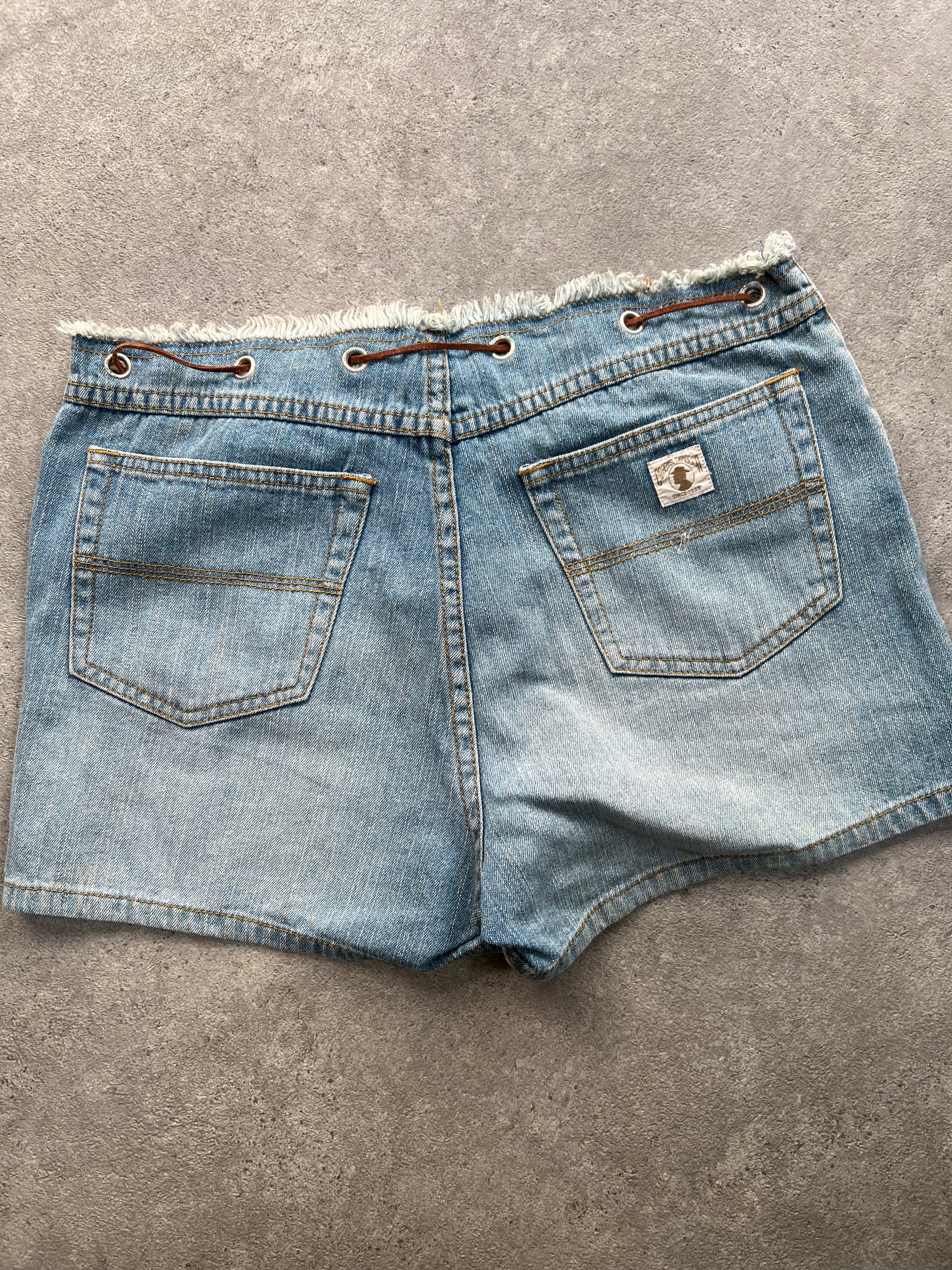 Super hot y2k OOs 90s true vintage light wash tie up denim micro mini shorts