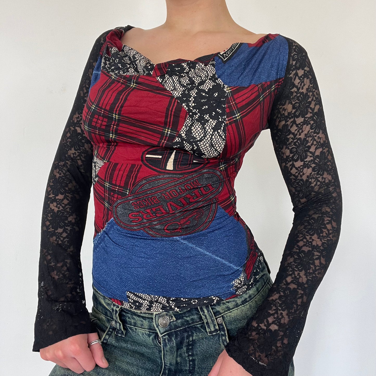 Y2K tartan lace long sleeve top - Size S